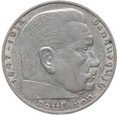 1288. 2 Marka 1939 E - Hindenburg, KM.93, J.366 1/1 500,- --.-