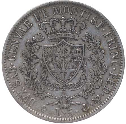 1300. 5 Lira 1827 P, Cr.105, KM.105.1 1/1 2800,- --.-