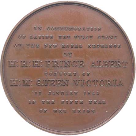 Královské burzy v Londýně v r.1842, poprsí královny zleva, opis / 10řádk.nápis, Sign.W.Wyon R.A, Bronz 45,5 mm, 45,16 g dr.hr. v av. |