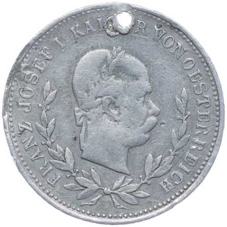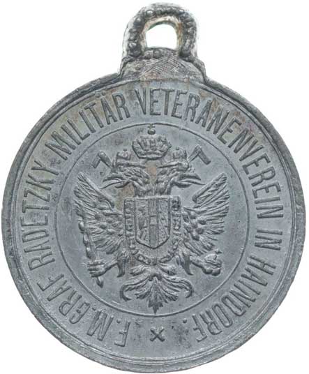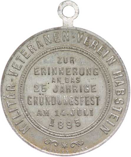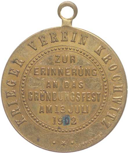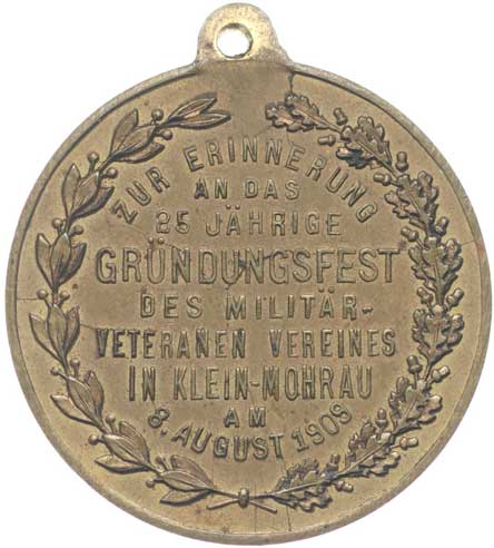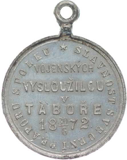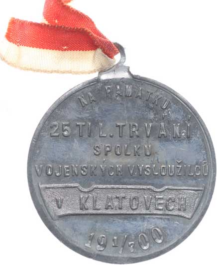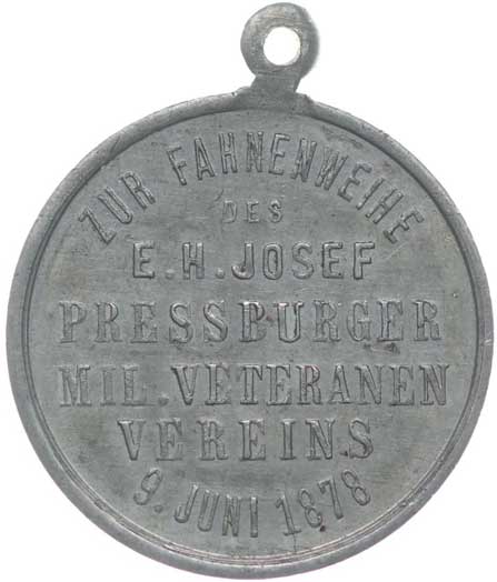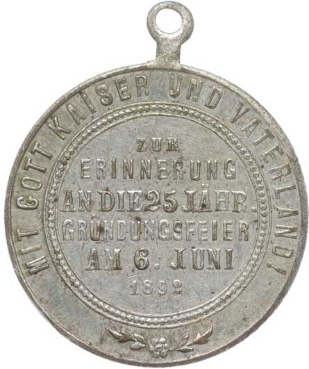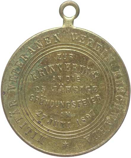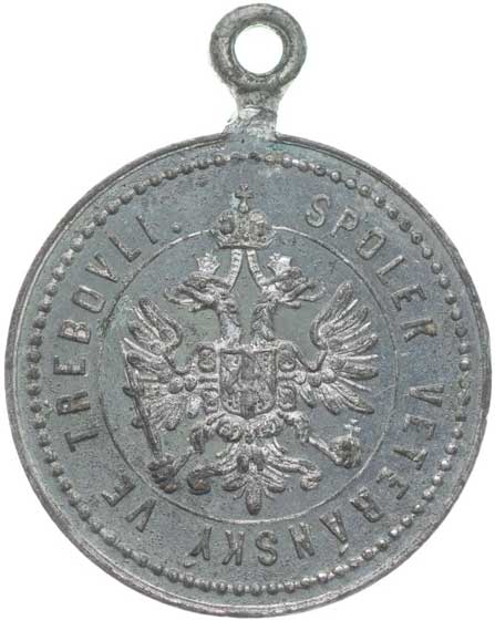 spolku 10.7.1887, vojenský kříž ve věnci, opis / korunovaný rakouský znak, opis, Sn 27 mm orig.raž.ouško |
