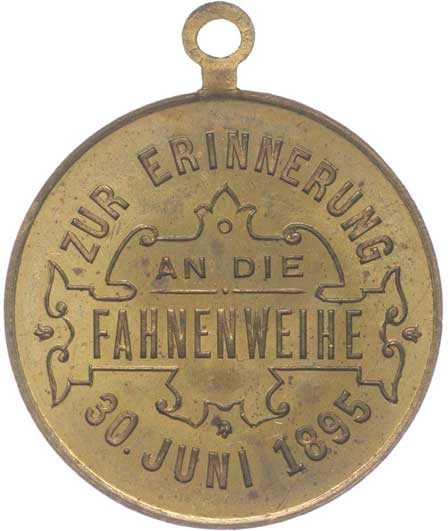 spolku14.7.1895, vojenské atributy, opis / 7řádk.nápis, opis Postř.bronz 31 mm orig.raž.ouško |