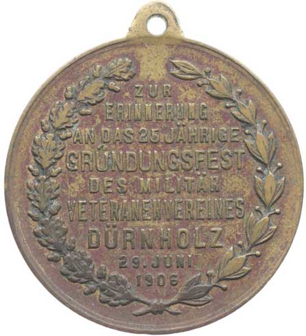 vysloužilců 15.7.1900, vojenské atributy ve věnci / 11řádk.nápis Mosaz 33 mm orig.raž.ouško |