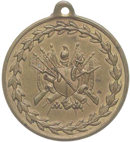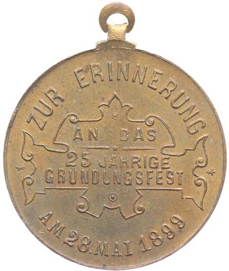 spolku 9.7.1899, vojenské atributy, opis / 6řádk.nápis, opis Postř.bronz 31 mm orig.raž.ouško |