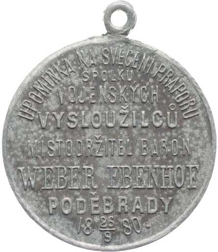 místodržitel baron Weber Ebenhof 26.9.1880, znak města / 8řádk.nápis Sn 32 mm orig.raž.ouško |