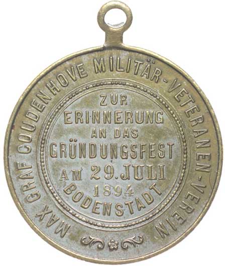 pod patronací Maxe Graf Coudenhove 29.7.1894, vojenské atributy, opis / 7řádk.nápis, opis, Postř.mosaz 31 mm orig.raž.ouško |