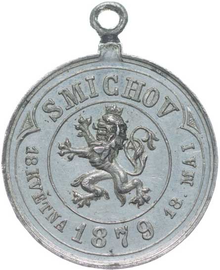 18.5.1879, český lev zleva, českoněmecký opis / 6řádk.nápis, českoněmecký opis, Sn 29 mm orig.raž.ouško |