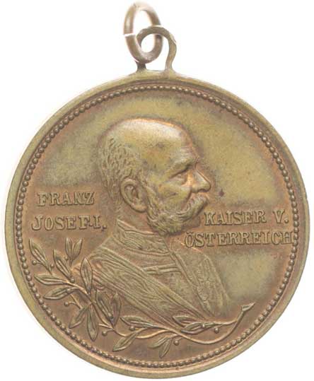 spolku 2.7.1886 - 1911, poprsí císaře zprava, 2řádk.nápis / 7řádk.nápis ve věnci, Bronz 28 mm orig.raž.ouško |