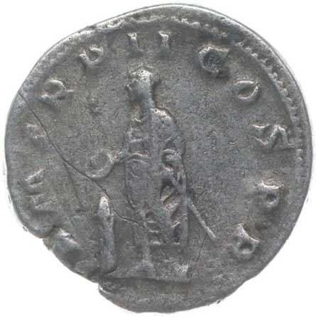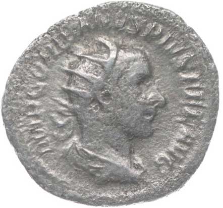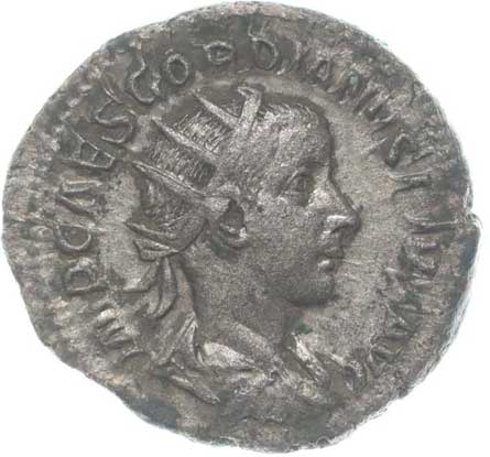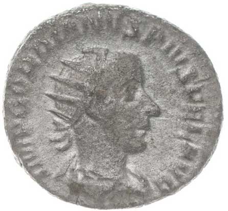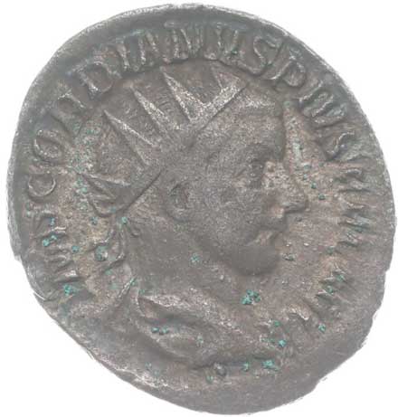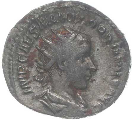 | 1486. | AR Antoninianus, Rv:"P.M.TR.P.III.COS.II.P.P.", stojící Gordianus