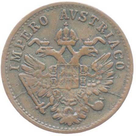 | 1858. | 1/2 Lira 1822 V dírka -1/1-, 1/4 Lira 1822 M, 3 Krejcar 1828 A, B