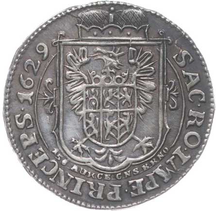Albrecht z Valdštejna - Dukát 1629, poprsí čelně, opis / korunov.znak, opis, Sign.JJ. (J.Jelínek), Ag 22 mm, 1,54 g, nákl.141 ks, Sas.30b, MF.A2/65b |