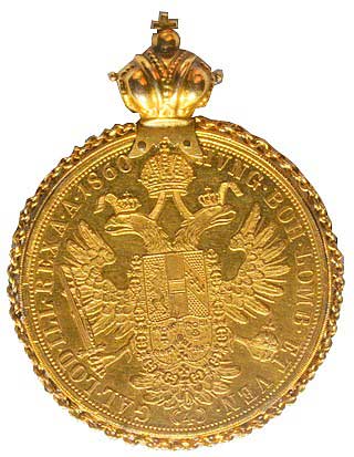 2. | 4 Dukát 1860 A zasazený do Au věnce s korunkou 16,83 gr. | 1/1 | 34000,- | --.- |