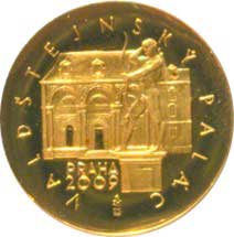 Valdštejnský palác v Praze. 0,585 21 mm 3,58 gr., raženo 300 ks certf. č. 333 A: nepatrná červená tečka pod levým ramenem, kapsle |