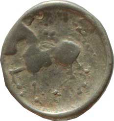 8. | Denár Ag A: Vousatá hlava Jupitera vpravo R: Jezdec na koni s oštěpem