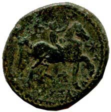 25. | AE 18 mm A: Hlava Apolla vpravo R: Jezdec na koni vpravo, dole zvíře
