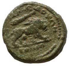 75. | AE 11 mm A: Vousatá hlava s pokrývkou hlavy vpravo R: Polovina pegase