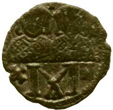 359. | Anonymní follis třídy I A: Poprsí Krista čelně R: Kříž v květinovém orna-