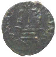336. | AE pentanummium R: Sedící Tyché v domě, v poli obrácené Є minc.