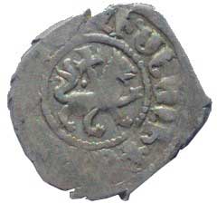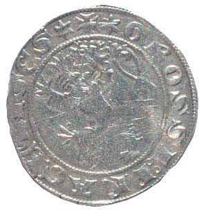 380. | Ag takvorin 2,46 gr. A: Jezdec na koni vpravo, nápis R: Lev, kříž