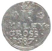 425. | Malý groš 1587 K. Hora, Šatný HN IX - 1b) bez teček v ltp., A:skvr. | 2/2 | 650,- | --.- |