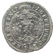 455. | 3 Krejcar 1696 Praha, Egerer MKČ 1425 koruna bez stuh A:škr.,st.kor., mělká raž. | -2/2 | 300,- | --.- |