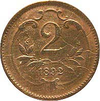 999. | 2 Haléř 1892 b. zn. Ves. 140 vady kovu "praskliny", R | 2/1- | 2200,- | --.- |