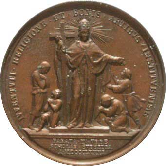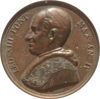 1317. | Lev XIII., poprsí vlevo, opis / Světec se svatozáří žehná čtyřem dětem