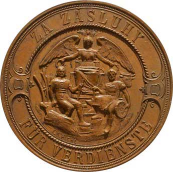 p. král. České. Pod korunou ve znaku lev, vavřínový věnec, čes. - něm. text PICHL Bz 52 mm 58,91 gr. |