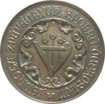1326. | Jednota zpěváckých spolků Českoslov. Opis, lyra / V lipovém věnci vyryto