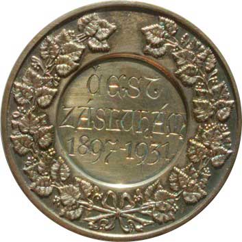 ČEST ZÁSLUHÁM 1897 - 1931 Ag 44 mm orig. etue ( zachovalá ) zlatě P.O.Č. ( Pěvecká obec československá ) |