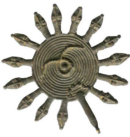 | 1308. | Přívěsek ve tvaru spirály se 14 dračími hlavami O 116 mm 66,50 gr.