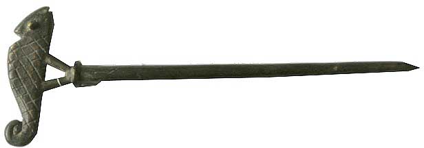 | 1309. | Jehlice do vlasů zakončená chameleonem, výška 186 mm 78,14 gr.