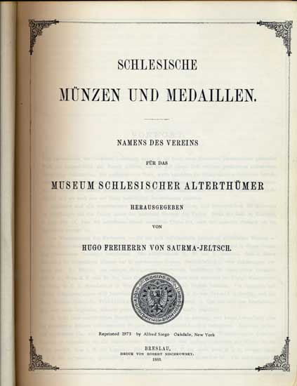 209. Saurma-Jeltsch: Schlesische Münzen und Medailen, REPRINT 1973