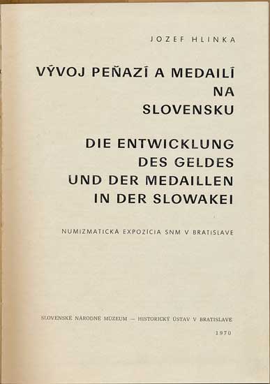 289. Hlinka J.: Vývoj peňazí a medailí na Slovensku