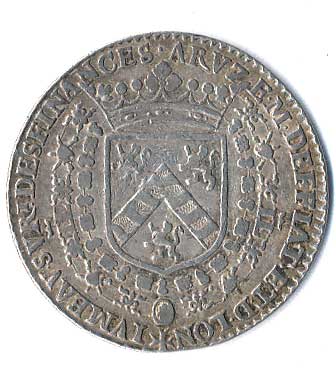 korunovaný erb, kolany, opis / dvě děla, sudy s prachem, koule, dole 1630, Ag27 |