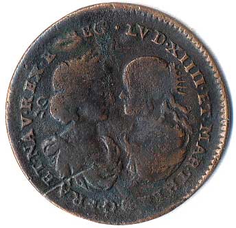 poprsí novomanželů, opis / zářící slunce nad krajinu, opis, Cu27 |