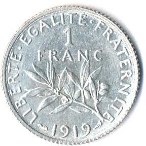 | 833. | 1 Fr.1919, Ag | 0-1 | 120,- | --.- |