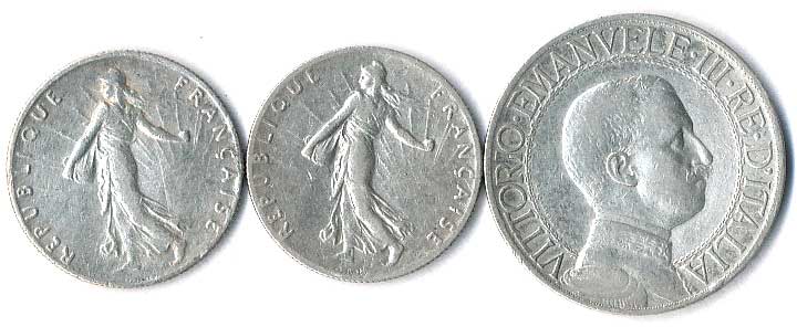 | 843. | 1 Lira 1913, Francie, 50 Centimes 1917,1918, 3ks | 1-1- | 250,- | --.- |