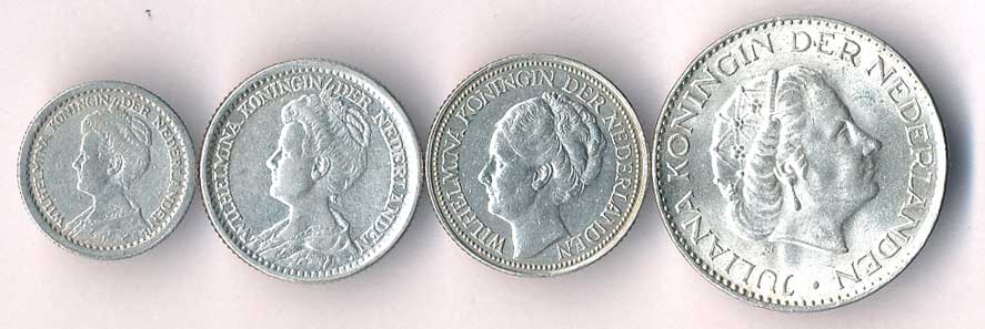 | 887. | 10 Cents 1916, 25 Cents 1919,1941, 1 Gulden 1964, Ag, 4ks | 0-1 | 230,- | --.- |