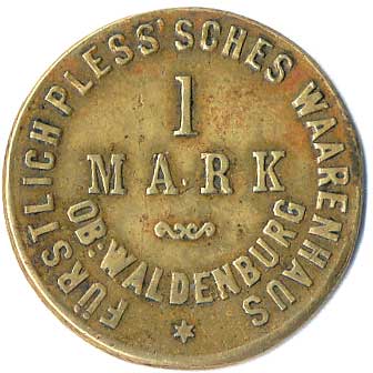 | 909. | 1 Mark - Furstlich Pless’sches Waarenhaus-Ob.Waldenburg / číslice 5.,