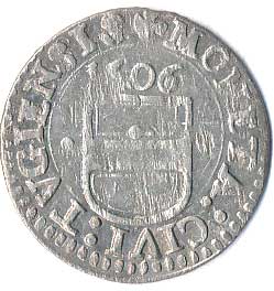| 914. | 1 Follaro b.l. (1452-1612), hlava muže, MONETA RACVSII / tři věže s branou,