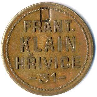 | 1238. | Frant. Klain Hřivice 31 / známka na chmel, kontramarka D, ŽK25 | 1/1 | 100,- | --.- |