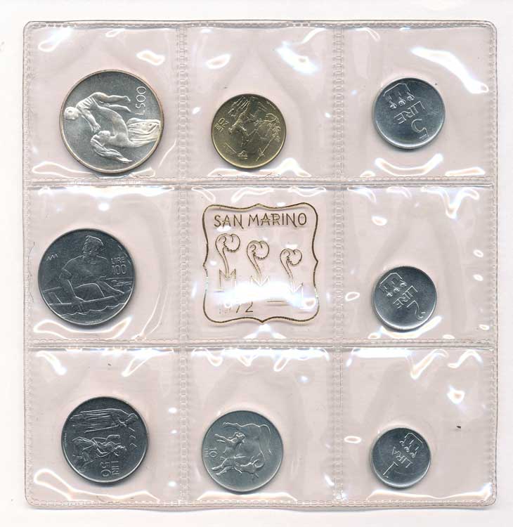 | 1306. | San Marino - sada mincí 1972, 1,2,5,10,20,50,100,500 Lire, UH přebal | 0/0 | 400,- | --.- |