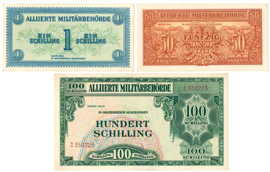| 2127. | 50 Groschen, 1 a 100 Schilling 1944, poukázky spojeneckých vojsk, 3ks | N-1 | 360,- | --.- |