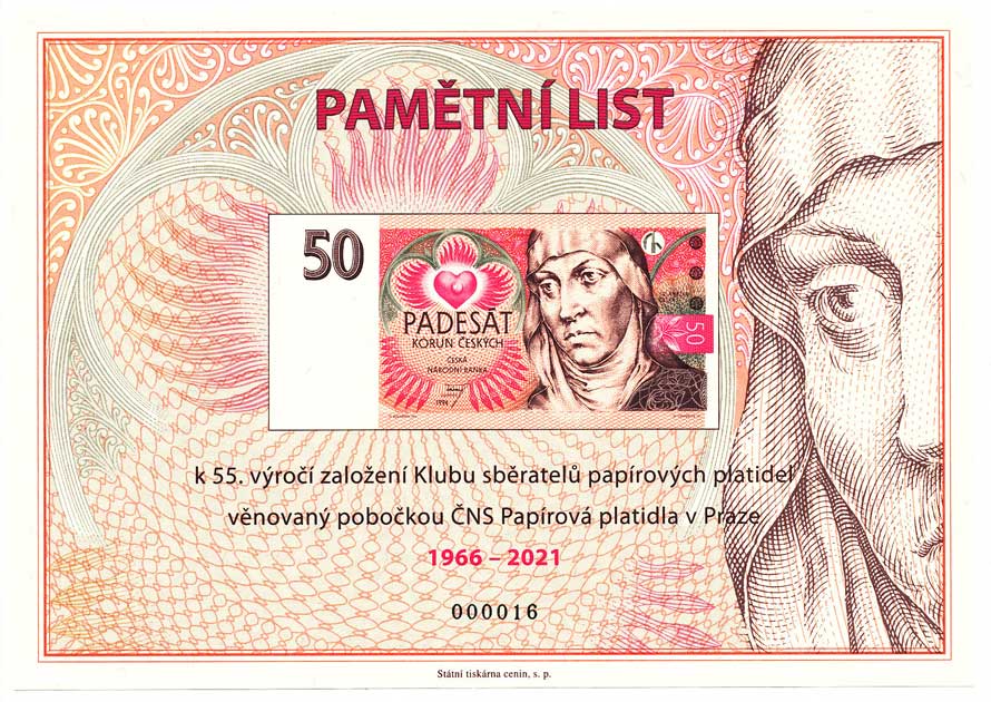 | 2154. | ČNS - Pamětní k 25.výr.Klubu sběratelů papírových platidel 1966-2021,